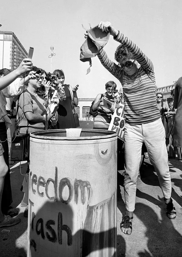 le femministe gettavano i loro reggiseni, ma anche altri simboli della loro oppressione, come trucchi, corsetti, giarrettiere, tacch