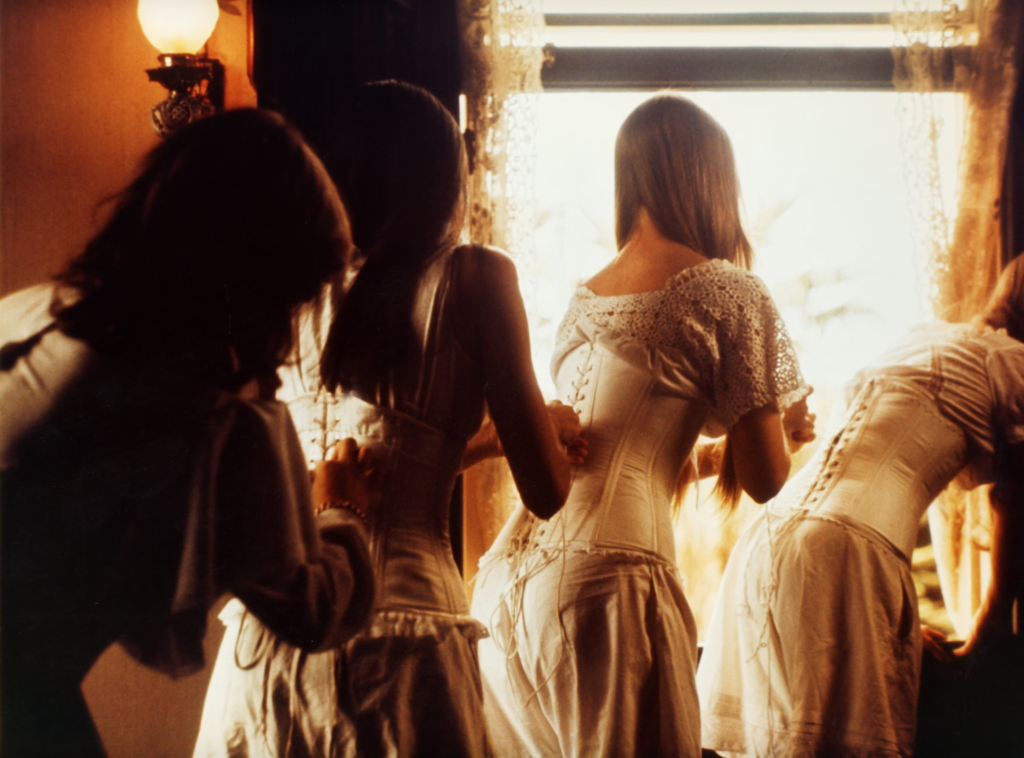 In primis, a tutte le ragazze in gita viene concesso di togliersi i guanti: questa appare già come una concessione speciale, una prima divergenza (seppur autorizzata) dalle opprimenti norme che regolano l’abbigliamento (e il comportamento) delle studentesse di questo istituto vittoriano. Le ragazze che salgono su Hanging Rock si spingono ben oltre: si tolgono le scarpe, le calze e, infine, i corsetti. La professoressa che sparirà insieme a loro sale sulla montagna in mutandoni (quindi, sostanzialmente, in biancheria intima) e con la camicia strappata. Di strato in strato, queste donne liberano i propri corpi dalle restrizioni della società vittoriana.