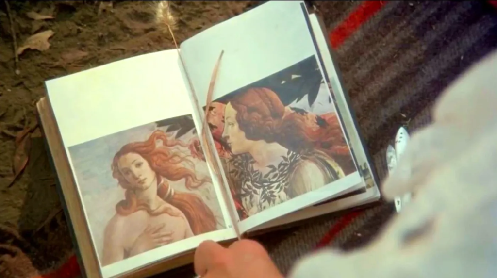 La “guida spirituale” del gruppo sembra essere Miranda, caratterizzata come un’entità soprannaturale e onnisciente, quasi una divinità. La sua natura “divina”, presumibilmente legata al contesto aborigeno, deve essere inquadrata nel contesto della cultura occidentale (euro-centrica) per essere compresa da chi fa parte dell’istituto. È l’insegnante madrelingua di francese (Miss DeLargue) ad avere l’illuminazione: “Ah, ora lo so! […] So che Miranda è un angelo di Botticelli”. Questo è indicativo, se pensiamo che fino all’Ottocento la Francia era considerata il centro culturale dell’Occidente, il pinnacolo della civiltà europea. Nel film, l’insegnante indica un’immagine della Venere di Botticelli: non si tratta di un angelo. Nel romanzo non è chiaro, ma Miranda appare insieme a una gigantesca conchiglia nelle fantasie di Michael, quindi un riferimento alla Venere potrebbe esserci anche qui.