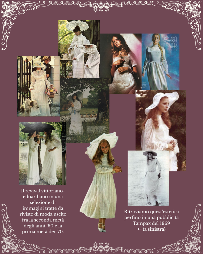 All’estetica vittoriana/edoardiana si associano attività come raccogliere fiori e pressarli, passeggiare nei prati, sognare ad occhi aperti. Come evidenzia la prof.ssa Amanda Hallay di The Ultimate Fashion History, c’è qualcosa di soprannaturale in queste immagini: le ragazze appaiono “serene come se appartenessero a un altro mondo”.